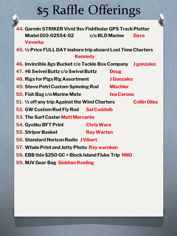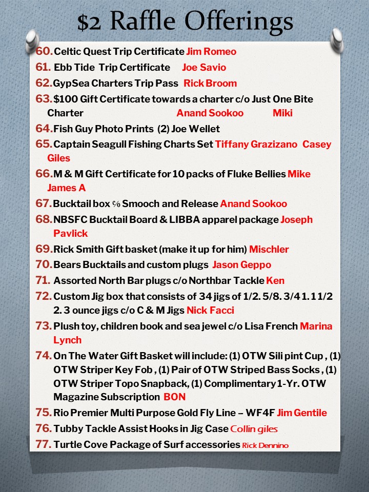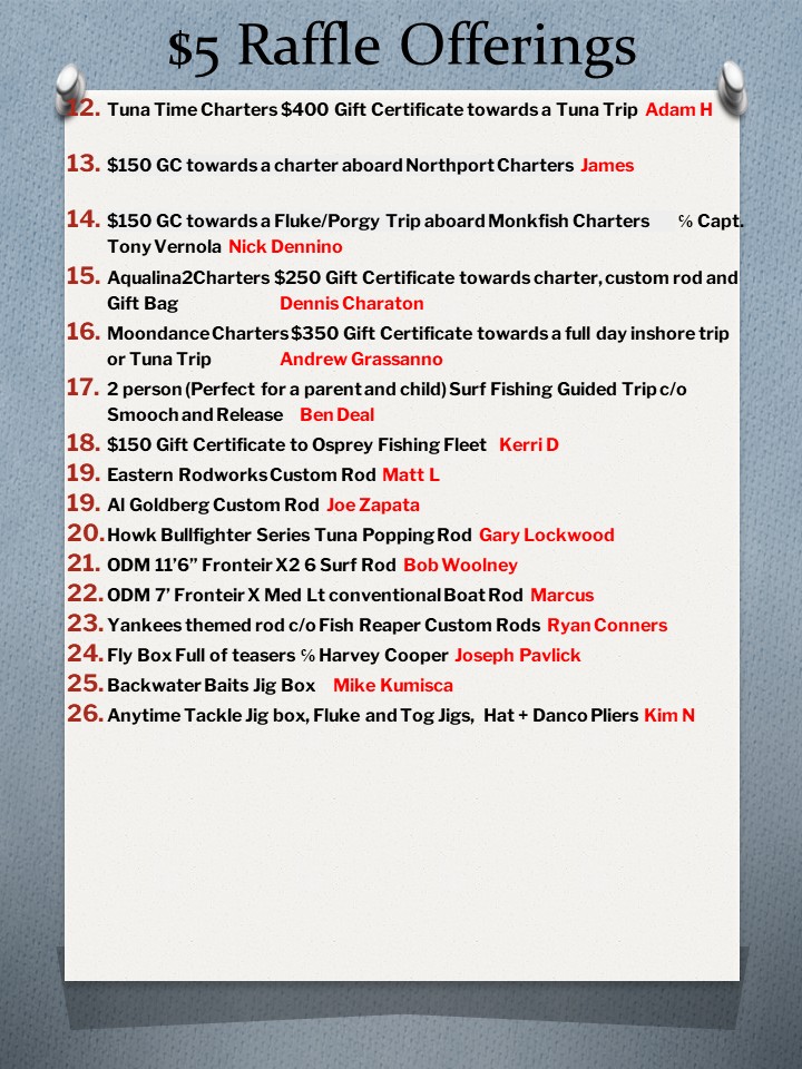 Raffles announced and displayed during the month of February through the club Instagram account…follow @patriotsfishing and here….